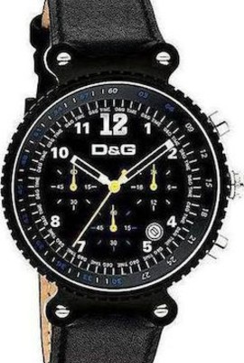 Ανδρικό ρολόι D&G DW0306, ατσάλινο με μαύρο καντράν και μαύρο δερμάτινο λουράκι